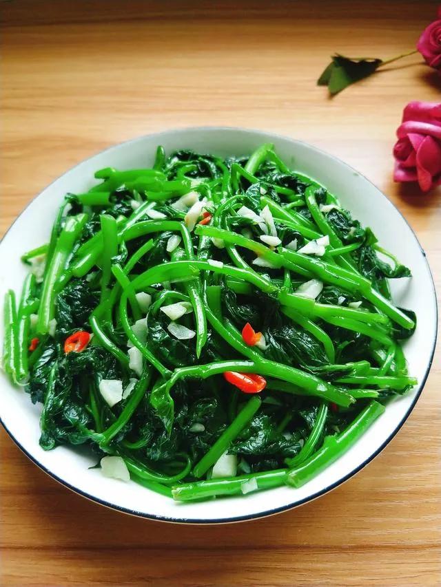 Les feuilles de patate douce sont riches en protéines, en carotène, en chlorophylle, en vitamines, en fer, en calcium et autres nutriments. Les gens les appellent aujourd'hui "ginseng végétal", elles peuvent prévenir la cécité nocturne, les hémorragies, elles ont un effet hypoglycémiant et lipidique, elles sont anti-âge, laxatives, cosmétiques, anticancéreuses et autres, c'est donc un très bon petit plat.