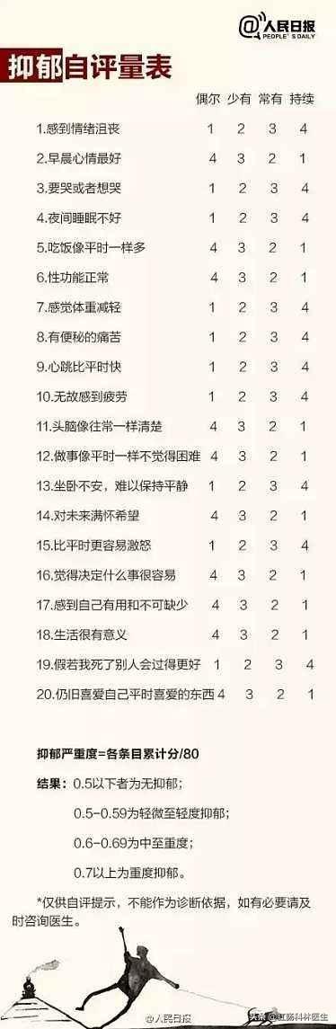 En conclusion, si les résultats sont trop bas et que la dépression de longue durée doit être traitée dans un hôpital professionnel, la dépression précoce peut être traitée par des médicaments, le détournement de l'humeur peut être contrôlé, alors ne soyez pas trop paniqués, ouvrez-vous un peu, prenez les mauvaises choses comme une bonne chose à voir, ajustez votre mentalité !