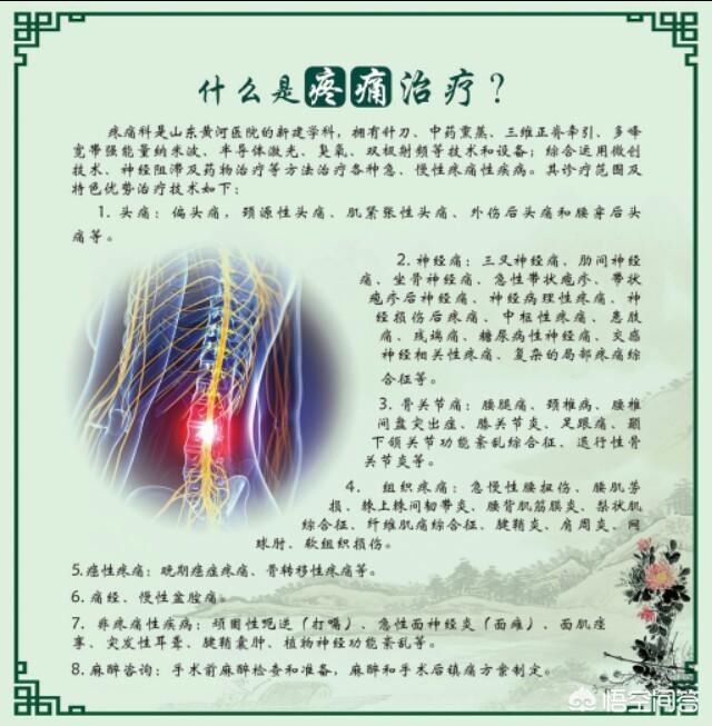 En tant que médecin spécialiste de la douleur, j'aimerais aborder cette question. De nos jours, le service de la douleur n'est pas bien développé dans de nombreux hôpitaux, y compris dans de grands hôpitaux de niveau 3A, de sorte que les gens ordinaires sont encore moins familiers avec le service de la douleur. Dans de nombreux hôpitaux, la douleur est devenue un service marginal, voire négligé, alors que le service de la douleur est un service complet couvrant la médecine interne, la médecine externe, la gynécologie, la pédiatrie, la médecine traditionnelle chinoise, la dermatologie, la radiologie, l'échographie, la biochimie, etc. Le service de la douleur, comme son nom l'indique, peut résoudre toutes les maladies liées à la douleur, couvrant toutes les maladies de la tête aux pieds, les maux de tête, les douleurs cervicales, les douleurs thoraciques, les douleurs dorsales et les douleurs de hanche -Le service de la douleur, comme son nom l'indique, peut traiter toutes les maladies liées à la douleur, de la tête aux pieds : maux de tête, douleurs cervicales, douleurs thoraciques, douleurs dorsales, douleurs de hanche, douleurs de jambe, douleurs de pied, les plus courantes étant les douleurs de cou, d'épaule, de dos et de jambe, qui se produisent régulièrement dans le service de la douleur ; de nombreux autres services ne peuvent pas traiter un certain nombre de cas difficiles, tels que l'éruption intraitable, la douleur post-herpétique de l'herpès, la névralgie pathologique, qui sont régulièrement admises dans le service de la douleur, et même la médecine interne et les maladies gynécologiques de nombreuses maladies. La raison pour laquelle le service de traitement de la douleur peut traiter autant de maladies est qu'il dispose de moyens de traitement que le département n'a pas, les moyens de traitement du service de traitement de la douleur peuvent être considérés comme ayant dix-huit équipes d'armes, des médicaments - une variété d'instruments de thérapie physique - acupuncture - cupping - massage - os orthopédique - couteau - bloc nerveux - traitement de précision guidé par ultrasons de toutes sortes de radiofréquence - bloc guidé par CT ou destruction de nerf, etc. Il y a tellement de maux que la médecine de la douleur est aujourd'hui de plus en plus prise au sérieux, et c'est la médecine de la douleur.