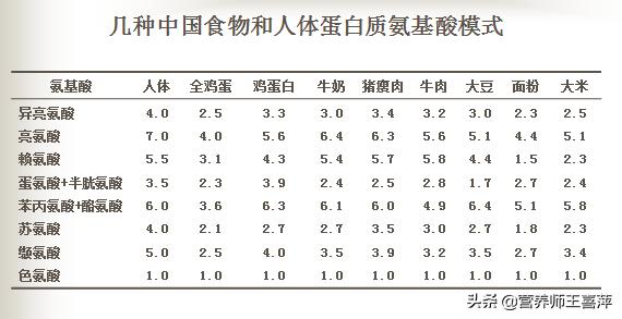 Les œufs sont des aliments nutritifs, chaque 100 grammes d'œufs contient environ 12,8 % de protéines, principalement dans le blanc d'œuf, contenant une variété d'acides aminés essentiels requis par le corps humain, de par la composition et la proportion d'acides aminés essentiels, relativement proches du schéma d'acides aminés des protéines humaines (voir le tableau ci-dessous), mangés particulièrement faciles à absorber, il s'agit de la protéine naturelle idéale de haute qualité.