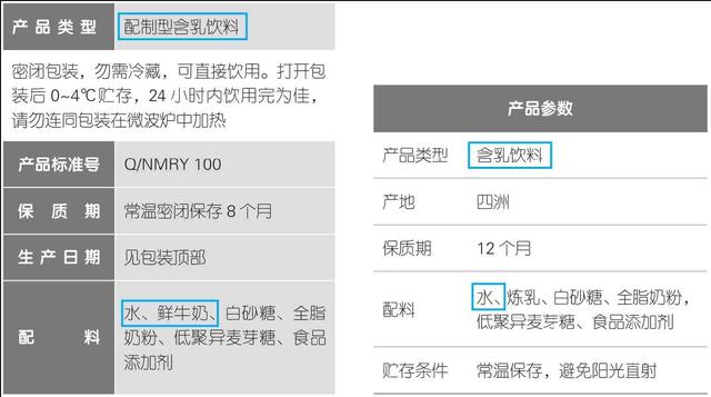 Il convient de mentionner qu'il existe de nombreuses boissons lactées sur le marché ; pour être précis, ce type de produit n'est même pas considéré comme du lait, ni comme un produit laitier, il ne peut être considéré que comme une boisson ; et pour le distinguer, c'est très simple, la liste des ingrédients de ce type de produit contient d'abord de l'eau.