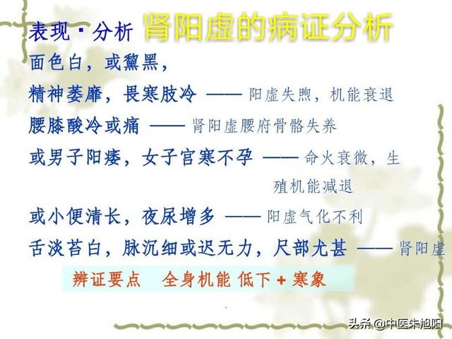 - Le rein est le corps principal du soleil, la déficience en yang du rein est souvent suivie par d'autres organes de déficience en yang, tels que la dotation innée en déficience en yang, plus que la stimulation chaude de la fonction de la rate et de l'estomac, accompagnée par la déficience en yang de la rate, le surmenage acquis, la vieillesse, la maladie chronique, plus que la déficience secondaire du cœur et des poumons, la déficience en yang, les spécificités doivent être différenciées d'une personne à l'autre, et ne peuvent pas être généralisées.