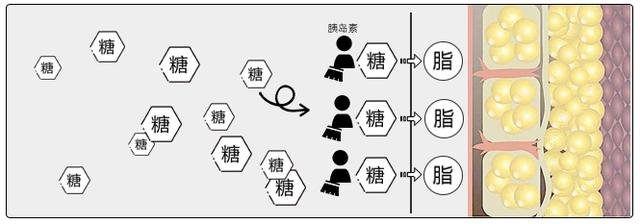 En outre, le corps humain doit également tenir compte de l'"insuline" : dans le corps humain, l'ingestion d'aliments de base entraîne une augmentation de la glycémie, l'insuline du corps suit cette augmentation et un grand nombre d'insuline envoie le signal de "stockage du sucre".