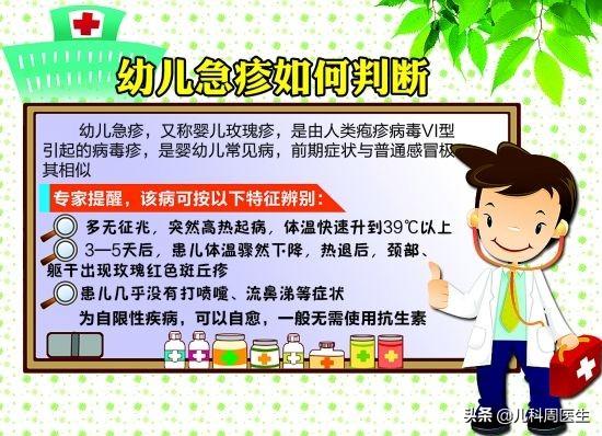 Bien que l'éruption d'urgence infantile soit une infection par l'herpèsvirus humain 6 ou 7, elle n'est pas très contagieuse et est une maladie autolimitée qui disparaît en 3 à 5 jours. Seule une température corporelle supérieure à 38,5 ℃ ou plus nécessite un traitement de refroidissement, afin d'éviter l'apparition de convulsions fébriles. En même temps, en raison de la forte fièvre, la consommation de calories de l'enfant est élevée et il perd de l'eau ; il faut donc veiller à boire plus d'eau pour se réapprovisionner.