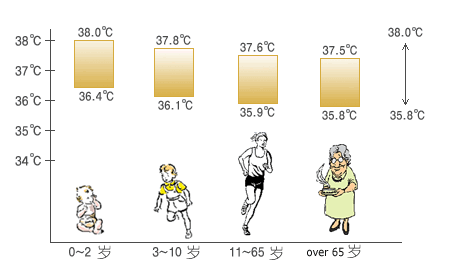 2. l'âge En raison des différents niveaux de métabolisme de base, la température corporelle de chaque groupe d'âge est également différente. La température corporelle des enfants et des adolescents est plus élevée que celle des adultes ; la température corporelle des personnes âgées est plus basse que celle des jeunes adultes ; la température corporelle des nouveau-nés et des prématurés est sensible aux variations de la température ambiante en raison de la fonction imparfaite de la thermorégulation.