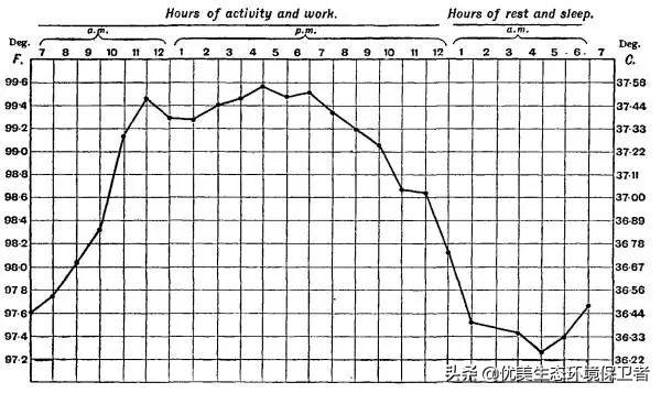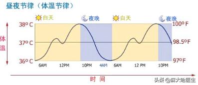 Chez les personnes normales, la température corporelle baisse progressivement la nuit, puis s'assoupit et s'endort. Vers 5 heures du matin, la température corporelle remonte progressivement, puis l'excitation et l'éveil s'installent, pour entamer la journée de travail. La température corporelle diminuera de façon transitoire à midi et continuera à augmenter dans l'après-midi, de sorte qu'une petite pause déjeuner avant 13 heures est propice au maintien de l'énergie et de la santé à long terme dans l'après-midi.