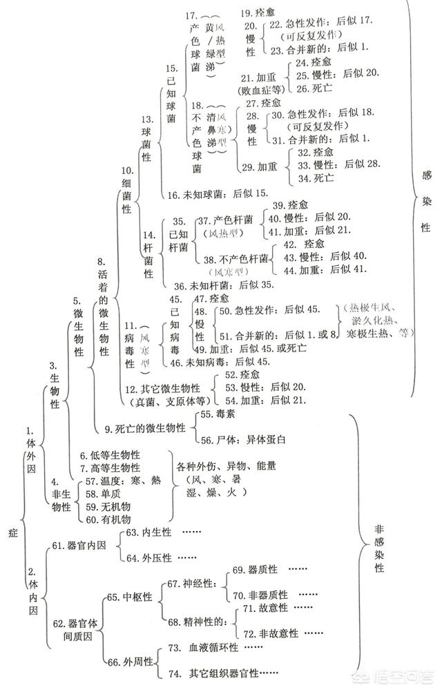 Le reste doit alors être considéré comme non biologique ou non infectieux. Voir ci-dessous avec l'un des "症"Croquis schématique d'un exemple de recherche de cause. Les chances que ce type d'affection soit d'origine interne sont quasiment inexistantes.