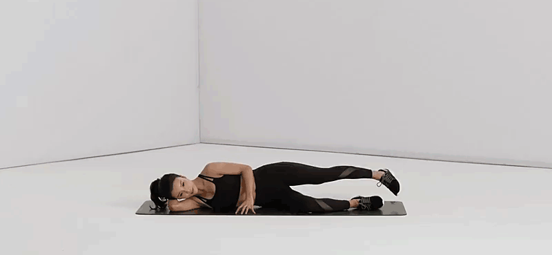 Allongé sur le côté, le bras soutenant le haut du corps sur le tapis de yoga, placez l'autre main derrière la tête et effectuez un lever de jambe latéral (le plus haut possible). Comme pour les mouvements précédents, n'allez pas trop vite.En gardant les jambes à plat, ainsi que l'intérieur des cuisses en feu, leRépétez cette opération pendant 20 à 30 minutes.