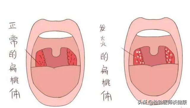 Dans le cas d'une amygdalite causée par une infection virale, les amygdales sont également hypertrophiées, mais au lieu de taches jaunes de pus à la surface, il y a des follicules. Le patient peut avoir de la fièvre, des maux de gorge et une toux, mais il n'y a généralement pas d'expectoration ou une petite quantité d'expectoration blanche. L'amygdalite virale est inefficace avec les antibiotiques, vous pouvez généralement utiliser une solution orale de scutellaire bleu + de la vitamine C (favorisant l'immunité), boire plus d'eau, utiliser de l'ibuprofène pour la fièvre, généralement après quelques jours de soulagement symptomatique peut être autoguérison.