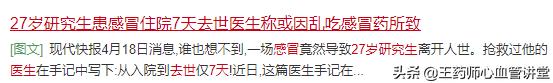 Le patient de 27 ans décrit ci-dessus, initialement en raison d'un petit rhume, l'automédication est encore de la fièvre, puis en raison d'une semaine continue de forte fièvre accompagnée de diarrhée, est venu à l'hôpital, les résultats de l'examen ont montré la défaillance de plusieurs organes, la toxicité de la lyse musculaire, et finalement est décédé. Le coupable qui a conduit à la mort du patient est le médicament contre le rhume qu'il a consommé. On apprend que le patient a acheté tous les médicaments contre le rhume que la pharmacie pouvait acheter et qu'il les a tous mangés. Les médecins ont déclaré que le patient était mort parce qu'il avait mélangé des médicaments contre le rhume, ce qui a entraîné une surdose d'acétaminophène, déclenchant une insuffisance hépatique et conduisant à la mort.