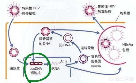 (iii) L'ADNcc continue à répliquer de nouveaux virus de l'hépatite B, certains retournant dans le noyau de la cellule hépatique pour reconstituer l'ADNcc, et d'autres réinfectant de nouvelles cellules hépatiques, devenant ainsi plus forts.