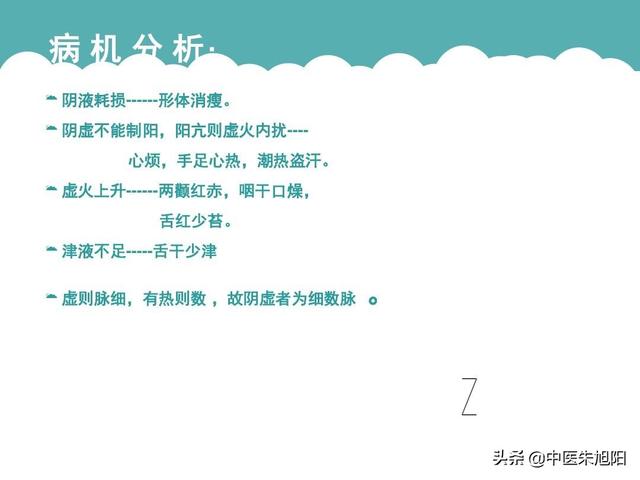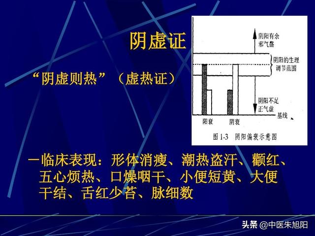 Le yin et le yang du corps humain, l'eau et le feu, sont interdépendants et se contraignent mutuellement. Dès qu'un côté est déficient, l'autre est surabondant, de sorte que la déficience du yin est suivie d'une hyperactivité du yang et qu'il y a cinq brûlures d'estomac et chaleur (chaleur dans la paume des mains, au cœur des pieds et dans la poitrine), chaleur et feu internes, sécheresse des orifices officiels, irritabilité et agitation émotionnelle qui affectent le sommeil.