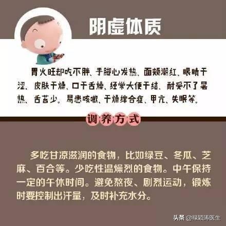 La plante des pieds est fiévreuse, le sommeil n'est pas réel et les troubles nerveux des plantes sont plus semblables à ces patients devraient avoir une alimentation équilibrée, manger plus de fruits et de légumes frais, augmenter la quantité d'exercice, comme le jogging, le tai chi sont mieux, Yin Yin déficience corps de feu note pour identifier les parties spécifiques de l'apparition de Yin déficience, tels que le cœur de Yin déficience, Yin déficience du foie, et ainsi de suite. N'oubliez pas de ne pas trop réfléchir, d'avoir une bonne alimentation et de bonnes habitudes de travail, de manger moins épicé, de ne pas vous coucher tard, de ne pas vous mettre en colère. Le corps souffrant d'une carence en Yang doit veiller à prévenir le froid et à se réchauffer, à ne pas se surmener et à ne pas consommer le yang faible. La stagnation alimentaire devrait être de trois repas à intervalles réguliers, pas trop pleins et affamés, pour protéger la rate et l'estomac est la clé pour résoudre la stagnation alimentaire.