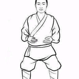 4, les mains pendent naturellement des deux côtés des cuisses, dix doigts vers le bas, la bouche du tigre soutient la ronde ;