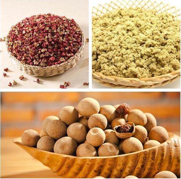 Matériau :Une cannelle séchée, six ou sept grains de poivre, un peu de moxa (le moxa est obtenu en écrasant de l'armoise).