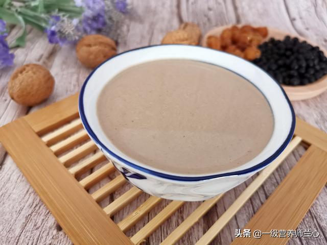 Pratique : décortiquer les noix, prendre le cerneau, faire tremper les haricots noirs pendant plus de 2 heures. Mettre les cacahuètes, les noix, les haricots noirs dans la machine à lait de soja ou dans le brise-muraille, ajouter de l'eau, choisir le bouton "lait de soja". Après avoir battu, ajouter un peu de sucre au goût.