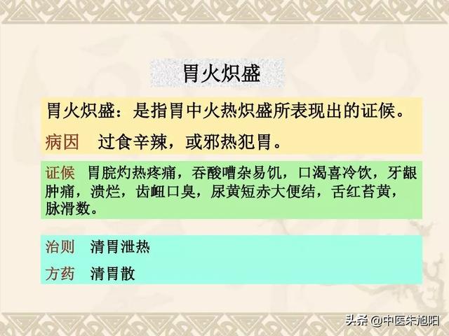 Le mal extérieur pénètre dans l'estomac pour former le feu de l'estomac, qui se manifeste le plus souvent par des symptômes soudains et aigus, après un traitement d'urgence des preuves du traitement peuvent être rapidement guéries.