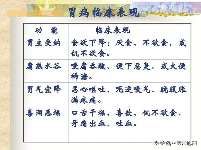 Le déclin de l'estomac pour la douceur, la chaleur de l'estomac vers le haut, il y aura des nausées et des vomissements ; les méridiens de l'estomac autour des gencives, la chaleur de l'estomac vers le haut couvant, les gencives seront gonflées et les ulcères douloureux ; la perte d'harmonie de l'estomac et la descente, affectant la fonction de conduction du gros intestin, de sorte qu'il y a des douleurs abdominales constipation ; le feu gastrique brûlant l'élimination des céréales brûle le Jin, de sorte que la quantité de nourriture, la soif, comme les aliments froids.
