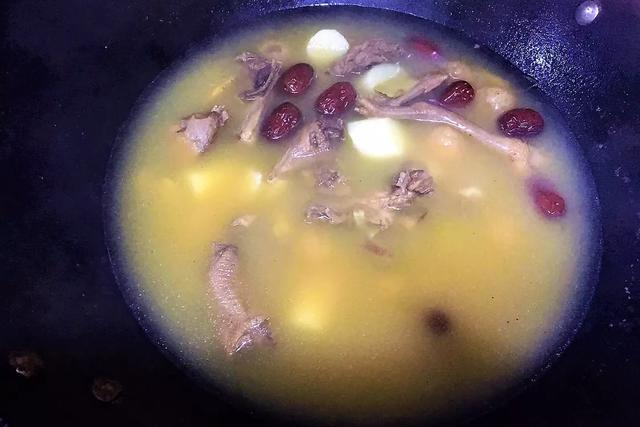 4. Ajouter l'igname, le jujube et laisser mijoter pendant 30 minutes.