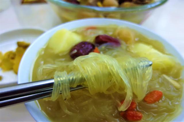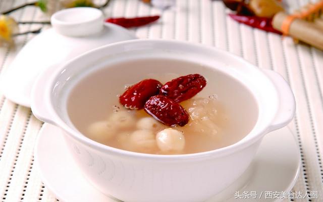 Par exemple, la soupe à la cannelle et aux dattes rouges nourrit le yin et le sang. Soupe aux larmes de Job, haricots rouges et graines de lotus. Elle peut renforcer la rate et éliminer l'humidité. La soupe aux baies de ginkgo, qui peut désintoxiquer et nourrir le visage, est bénéfique pour le qi et le sang. Soupe de poires au miel, pour éliminer les toxines et prévenir la neurasthénie.