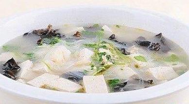 Directions : 1, après avoir congelé le tofu, presser l'eau et couper en petits morceaux, laver le champignon noir, la soupe aigre de tomate. 2, faire bouillir de l'eau dans une casserole, mettre la poudre de fruits de mer au goût, puis mettre la soupe aigre de tomate à bouillir. 3, mettre le champignon noir et le tofu congelé et cuire, arroser avec de l'huile de sésame avant de cuire.