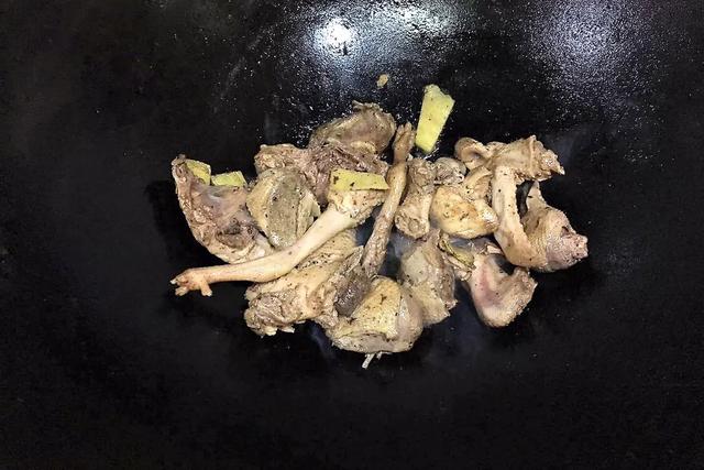 1. Lorsque l'huile est chaude, ajouter le gingembre, faire sauter les pigeons, ajouter le vin de cuisson.