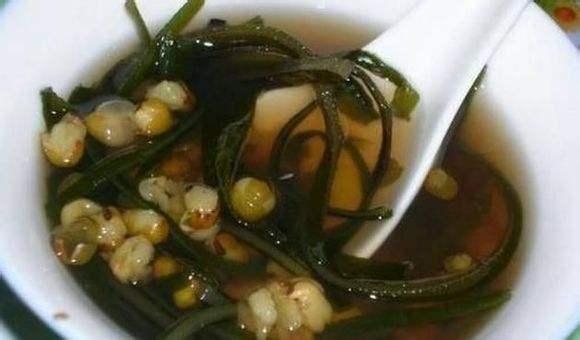 Effet de désintoxication : les haricots mungo sont de nature froide, ce qui permet d'évacuer la chaleur et de désintoxiquer. Les composants gélatineux contenus dans le varech peuvent favoriser l'élimination des substances toxiques dans l'organisme. En même temps, le varech contient également des polysaccharides avec du sulfate, qui peuvent absorber le cholestérol dans les vaisseaux sanguins et les évacuer de l'organisme, réduisant ainsi le taux de cholestérol dans l'organisme. En outre, la surface du varech est recouverte d'une couche de poudre blanche légèrement sucrée, qui est une valeur médicale très précieuse du mannitol, qui a un bon effet diurétique et qui peut traiter les intoxications médicamenteuses, les œdèmes et d'autres maladies.