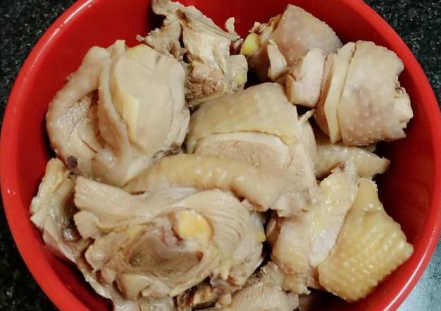 Méthode : Le poulet abattu est nettoyé à l'"eau volante", le matériel est donc mis dans la marmite à feu vif, bouillir après la petite marmite à feu 30 minutes, saler au goût.