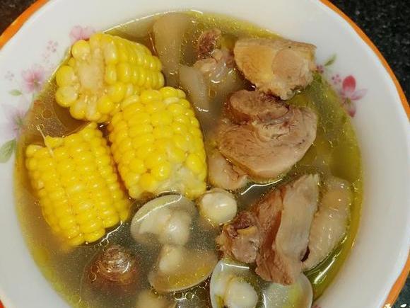 5 : Transférer le bouillon de poulet sur une cuisinière à gaz, ajouter le maïs et les palourdes et réchauffer le tout. Assaisonner de sel selon son goût, et vous obtenez un bouillon de poulet unique et délicieux !