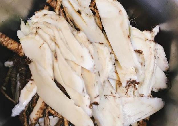 2. L'angélique fraîche est coupée en tranches, l'eau est ajoutée, puis la marmite est vidée afin de faire bouillir la saveur unique de l'angélique.