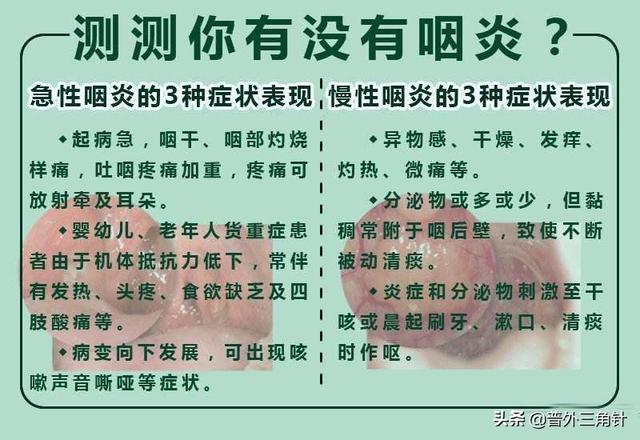 Ils ont toujours l'impression d'avoir un corps étranger dans la gorge, mais celle-ci n'est pas dégagée, manger et boire ne posent pas de problème, bien qu'ils n'aient pas froid, ils ont toujours l'impression d'avoir des mucosités à l'intérieur de la gorge, cette situation est probablement due à une pharyngite chronique.