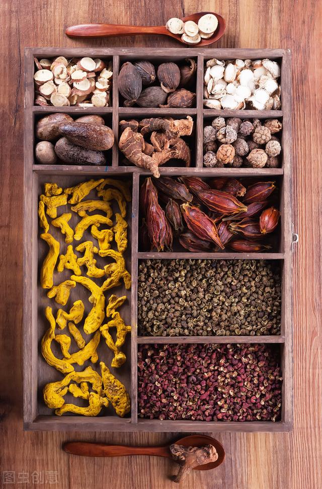 Parmi les treize épices, le clou de girofle a une saveur piquante et une nature chaude. Il appartient aux méridiens de la rate, de l'estomac, des poumons et des reins. Il a pour effet de réchauffer le milieu et d'abaisser l'inversion, de tonifier les reins et d'aider le yang. Il est utilisé en cas d'insuffisance de la rate et de l'estomac et en cas de refroidissement. La cannelle est de nature piquante, sucrée et chaude. Elle a pour effet de tonifier le feu pour aider le Yang et d'inciter le feu à retourner à la source. L'anis a une saveur piquante et est de nature chaude. Attribué aux méridiens du foie, des reins, de la rate et de l'estomac. Il a pour effet de réchauffer le Yang et de disperser le froid. Le cumin a une saveur piquante et une nature chaude. Attribué aux méridiens du foie, des reins, de la rate et de l'estomac. Il est efficace pour réchauffer les reins et disperser le froid.