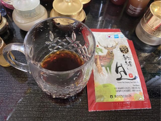 Le ginseng rouge sur la photo est un tonique que mon mari a acheté pour lui-même au printemps et à l'automne lorsque j'étais en Chine, et lorsque je suis arrivée en Corée, il m'a dit que c'était bon et m'a laissé en manger. La qualité de la concentration est excellente. Je n'ai pas osé demander combien d'argent, de peur d'avoir mal au cœur.