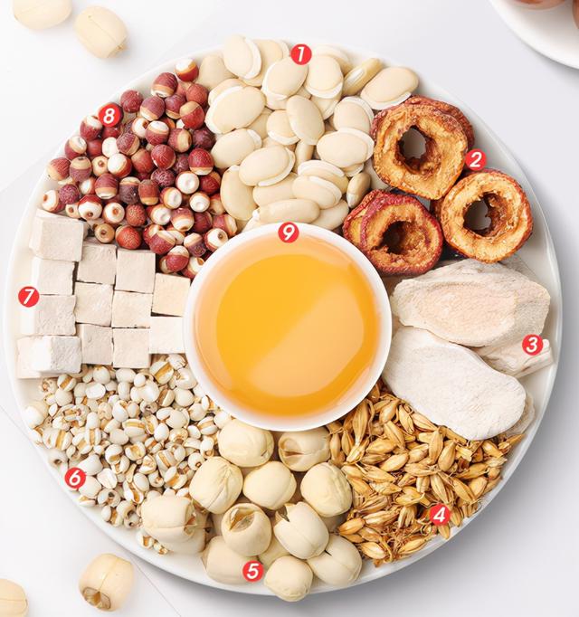 L'igname, la chair de graines de lotus et les lentilles blanches nourrissent la rate et le yin ; l'aubépine et le malt éliminent les aliments et la stagnation, le poria et l'orge sont des expectorants de l'humidité, et le gorgon est astringent.Huit sortes d'herbes médicinales et de groupes d'herbes médicinales constituent "l'effet de la montée et de la descente, du Yin et du Yang", connu sous le nom de "la bonne voie de la médecine".。
