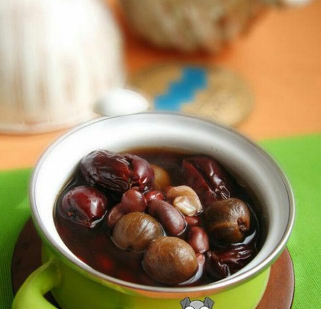 Baies de goji, noix, viande de longane, jujubes, graines de mûrier, angélique, sang de vigne de poulet, gingembre et poulet ou mouton dans la soupe, la soupe a des reins chauds pour aider le yang, remplir l'essence de sang. Manger plus d'aliments pour reconstituer le qi et réchauffer le corps, comme les noix, les jujubes, les cacahuètes, afin que les déficiences innées soient compensées par l'énergie élevée acquise, ne pas avoir à s'inquiéter du feu, le corps froid de l'utérus appartient au manque de qi du feu, n'est pas sujet aux symptômes du feu de la chaleur du corps.