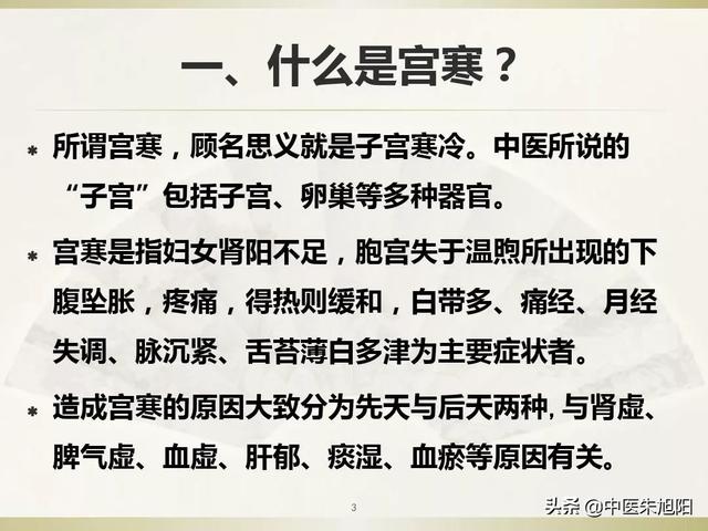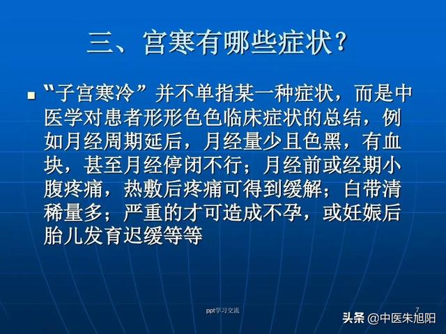 Le froid utérin, comme son nom l'indique, est un froid utérin. La médecine chinoise dit "utérus" et la médecine occidentale se réfère à l'utérus différemment, son champ d'application est plus large, incluant l'utérus, les ovaires et d'autres organes. L'utérus froid correspond à une déficience du yang des reins chez la femme, l'utérus n'est pas réchauffé par la distension du bas-ventre, la douleur, la chaleur est atténuée, la leucorrhée, la dysménorrhée, les troubles menstruels, le pouls est serré, le revêtement de la langue est mince, blanc, et plus que les principaux symptômes de la personne.