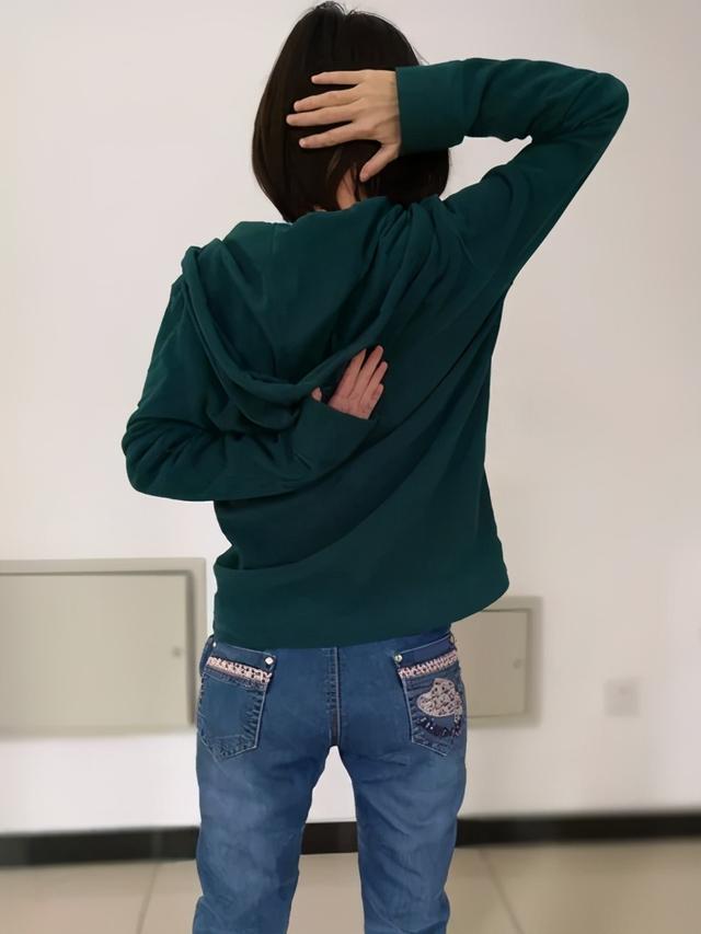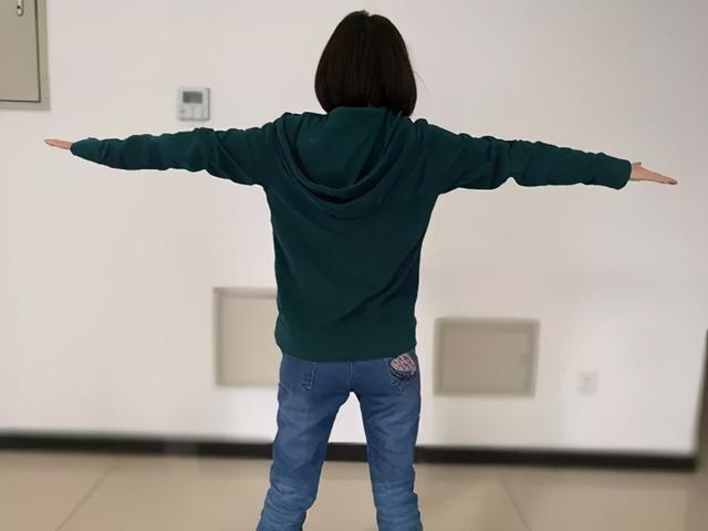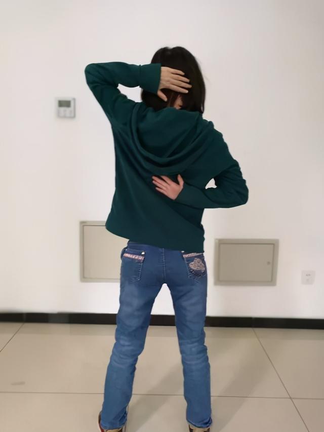 Quatrième étape :Placez la main gauche en haut à l'arrière de la tête et la main droite en bas au niveau de l'omoplate. Ouvrez la pointe du coude du bras gauche de manière à ce que la pointe du coude ramène le bras parallèle au corps.