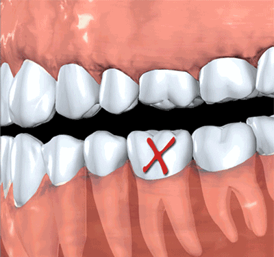 Les dents manquantes peuvent également entraîner une croissance excessive des dents opposées. Avec une dent manquante, la dent opposée a moins de dents contre lesquelles mordre, ce qui peut entraîner une élongation de la dent opposée et, dans les cas les plus graves, la perte de dents.