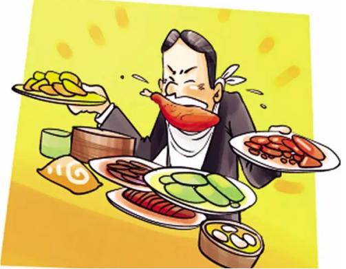 Les plats gras comprennent des plats comme le porc braisé, l'échine de porc aigre-douce et le coude de porc ; la restauration rapide comme les hamburgers, le poulet frit, les pizzas et les nouilles instantanées ; et les repas-partage comme le barbecue, le hot pot à l'huile rouge, le hot pot épicé et le barbecue.