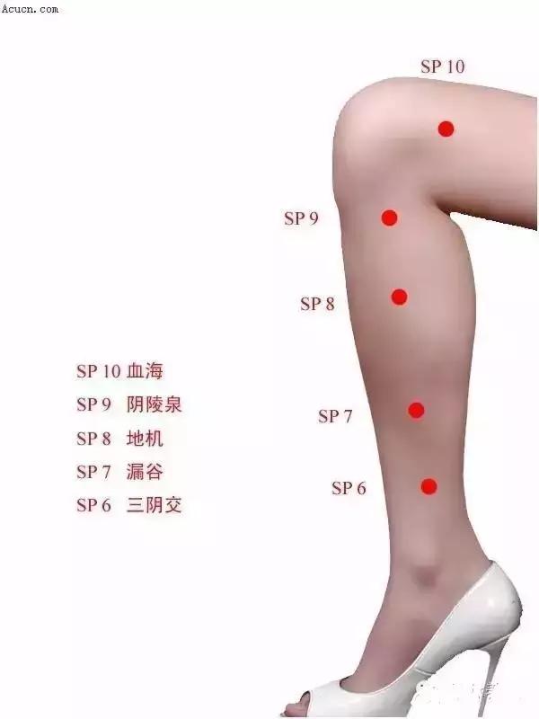 Comme la caractéristique de l'humidité a tendance à aller vers le bas, les symptômes apparaissent principalement dans l'abdomen, la région pubienne et les membres inférieurs, et doivent être ajoutés aux points de canalisation, tels que l'abdomen avec de l'humidité plus Yinbai, et la région pubienne avec de l'humidité plus Datun.
