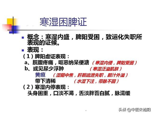 - Huang Yuan-Yi a déclaré dans Les quatre sources sacrées du cœur que l'humidité et le froid dans la terre du milieu peuvent empêcher le qi du foie de s'élever et de se développer, le qi du poumon de converger et de descendre, et le cœur et les reins de communiquer, ce qui, sur le plan clinique, se traduit par un large éventail de changements dans les symptômes. Par conséquent, le Dr Zhu a constaté que le froid et l'humidité peuvent être observés dans une variété de maladies fonctionnelles et organiques, telles que l'état de sous-santé, le syndrome de fatigue, la gastro-entérite chronique, l'hyperlipidémie, etc.