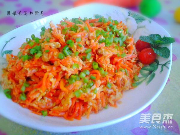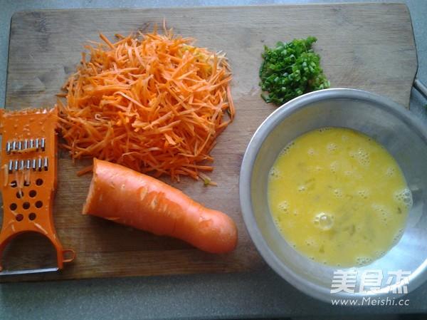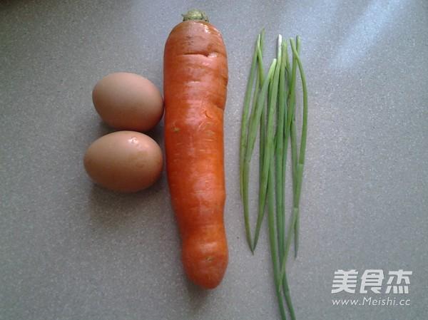 Pratique de préparation des ingrédients comestibles :200g de carottes, 2 œufs, 5g de ciboule, 2 cuillères à soupe d'huile d'arachide, 4g de sel, 3g de bouillon de poulet.