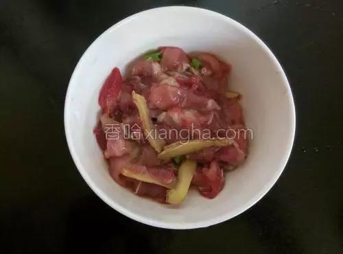2. Ajouter la fécule de maïs, le gingembre et la sauce soja au porc dans l'image ci-dessous et laisser mariner pendant 10 minutes.