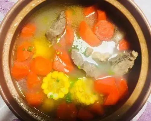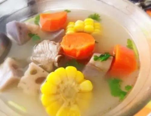 Ingrédients comestibles :200 g de carottes, 150 g d'épis de maïs, une pincée de gingembre, 3 g de sel, une pincée d'huile de cuisson et une pincée d'essence de poulet.