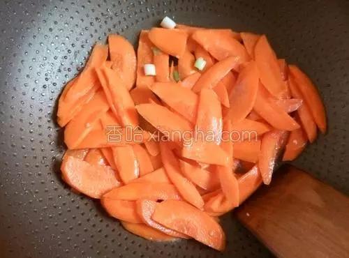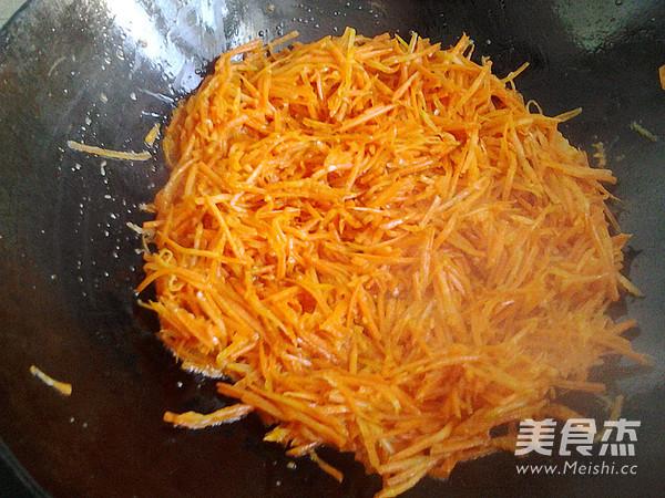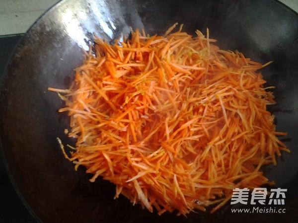 3. Verser l'huile dans la poêle, faire bouillir jusqu'à 70 % de maturation, ajouter les carottes râpées et faire tourner à merveille.