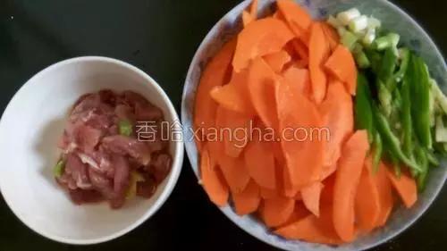 Pratique des ingrédients comestibles :Une carotte, 200 g de porc, 1 cuillère à café de sel, 3 gousses d'ail, 1 cuillère à soupe d'huile d'arachide, de l'eau, 2 petits oignons, un peu de gingembre, 1 poivron vert, un peu de fécule de maïs, un peu de sauce soja.