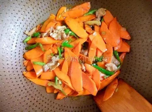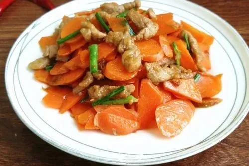 Les carottes sont riches en caroténoïdes A et autres vitamines, les nutriments sont particulièrement bons pour un aliment, il est préférable de les faire frire avec de la viande rouge contenant des matières grasses à manger, de sorte que ses nutriments seront mieux absorbés et utilisés par l'organisme.