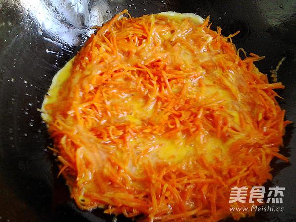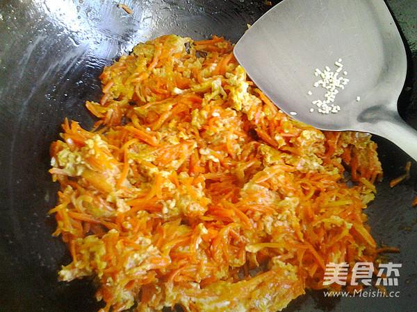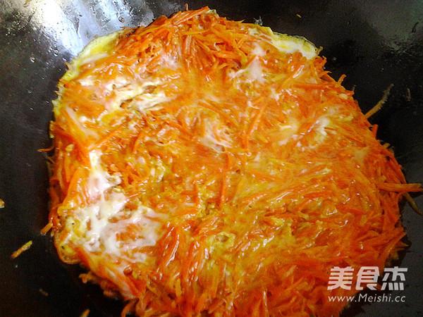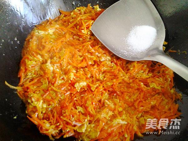 7, le mélange d'oeufs se fige et se colle sur la carotte, faire sauter jusqu'à ce que l'oeuf se brise, ajouter un peu de sel.
