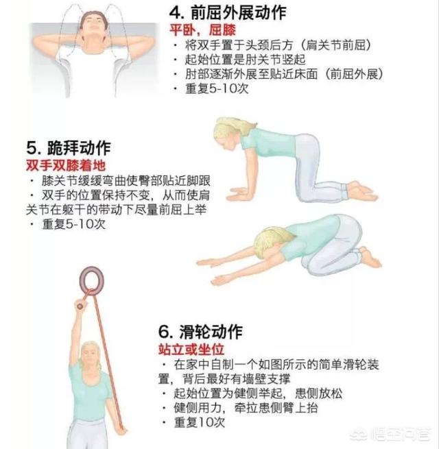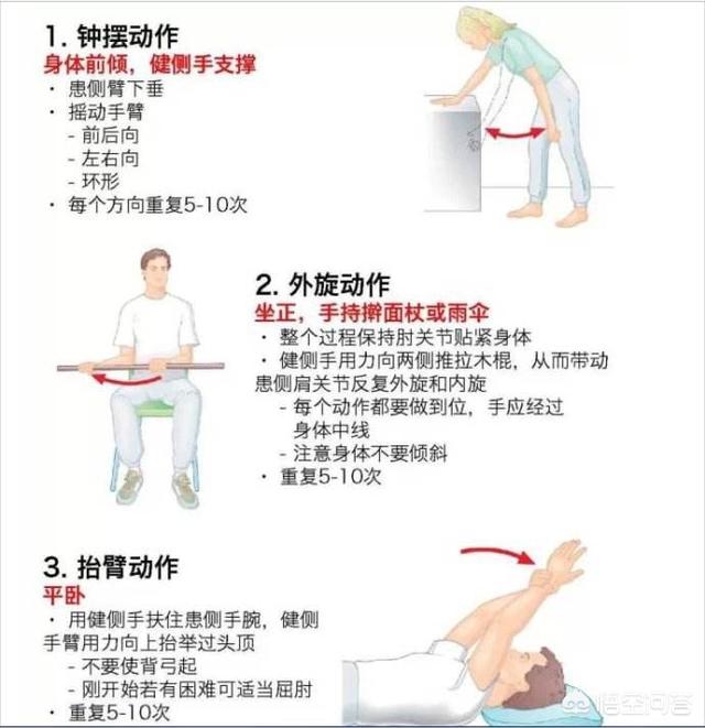Lorsqu'un professionnel de la santé diagnostique une épaule gelée, la rééducation est souvent la forme de traitement la plus importante. La meilleure façon d'y parvenir est deIl s'agit d'un exercice de rééducation scientifique et systématique sous la direction d'un rééducateur professionnel ou d'un thérapeute en rééducation, et un programme personnalisé et sur mesure est la meilleure solution en fonction de la situation de chaque personne.La première étape consiste à s'assurer que le corps du patient n'est pas dans un état de délabrement. Mais à l'heure actuelle, de nombreux patients ne disposent pas d'un tel état, les méthodes d'exercices de rééducation simples et faciles suivantes vous sont présentées, chaque action est recommandée 5 à 15 fois pour un groupe, chaque jour pour adhérer à 2 à 3 groupes peut être. Si une certaine action induit une douleur évidente à l'épaule, arrêtez à temps.