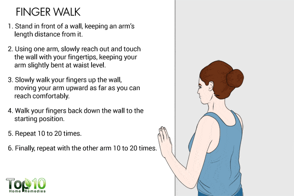 Placer le membre atteint contre le mur en grimpant, le corps complètement appuyé contre le mur à 180° pendant 20 minutes.